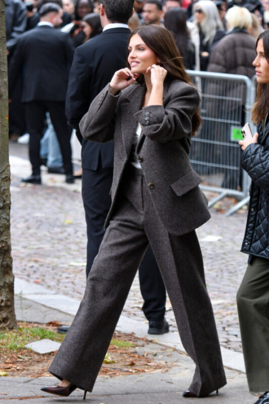 Таа јавно го негираше сето ова и му ја покажа на светот најдобрата верзија од себе во модерен зимски костум. Носеше бела маица под сакото, а сè комплетираше со кафеави чевли.