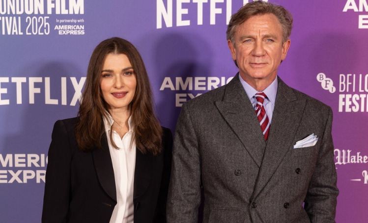 Даниел Крег, придружуван од неговата сопруга Рејчел Вајс, им се придружи на своите колешки Мила Кунис, Кери Вашингтон и Глен Клоуз на лондонската премиера на „Wake Up Dead Man: A Knives Out Mystery“.
