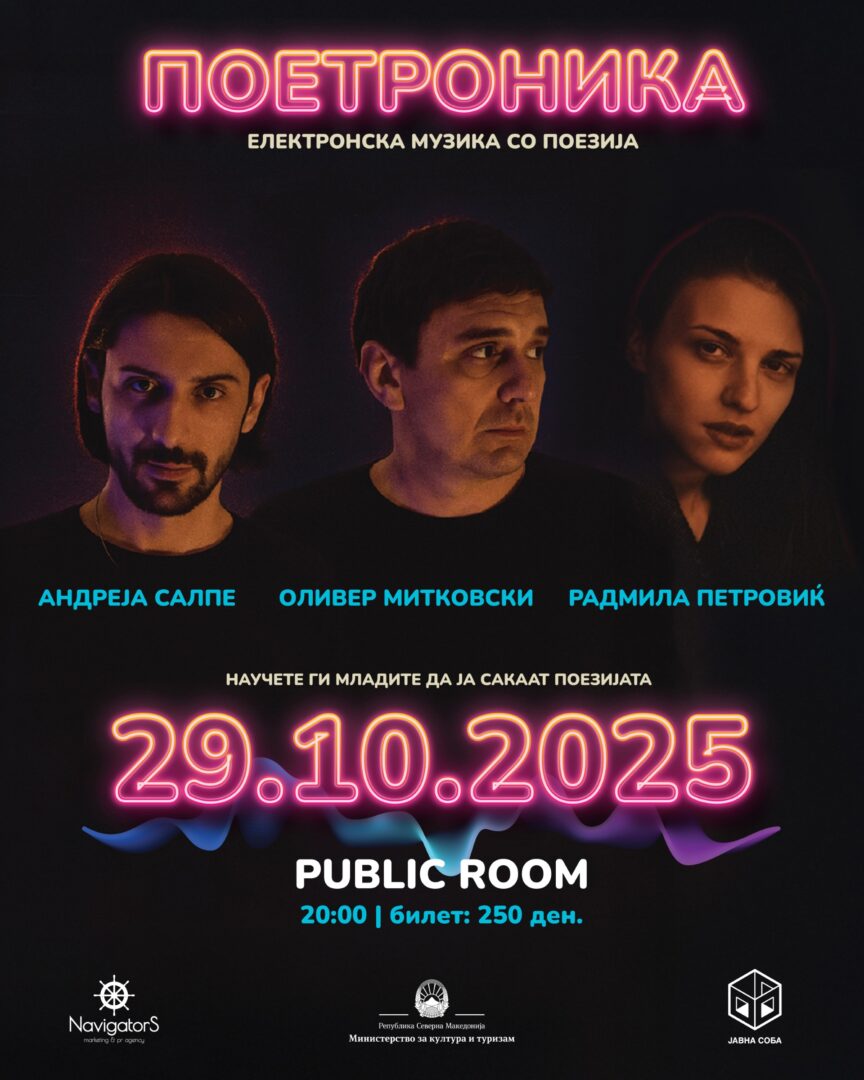По успешниот пат на уметничкиот проект „Поетроника“, кој со спој на поезија и електронска музика создаде нов сценски израз, авторите Оливер Митковски и Андреја Салпе го претставуваат своето ново, едукативно продолжение – „Поетроника за млади“.