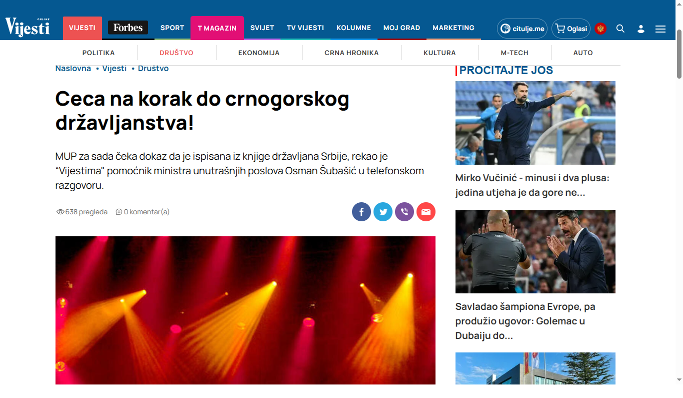 Во 2011 година, на пример, во првата година на постоење на интернет-изданието вијести.ме, објавија дека Цеца Ражњатовиќ, против која се водеше судски процес во Србија, бара црногорско државjанство. Медиумот најави дека Цеца од Љубљана со кинески хеликоптер ќе дојде на аеродромот во Тиват. Постот, објавен во два по полноќ на први април, од авторот П. Травањ (травањ=тревен=април) до утрото веќе измами повеќе од 5.000 реакции – од луѓе кои од револт „се селеа“ во странство, политичари кои се закануваа со испис од државјанство, до дописници кои на тиватскиот аеродром се подготвуваа да го пречекаат цециниот лет. Пред „Вијести“ да успее да објави дека текстот е традиционалната првоаприлска шега, српските медиуми зедоа изјава од нивниот министер за внатрешни работи Ивица Дачиќ, а црногорското МВР со соопштение изрази револт од „исмејувањето“ на властите кои издаваат лични документи, но и на граѓаните.