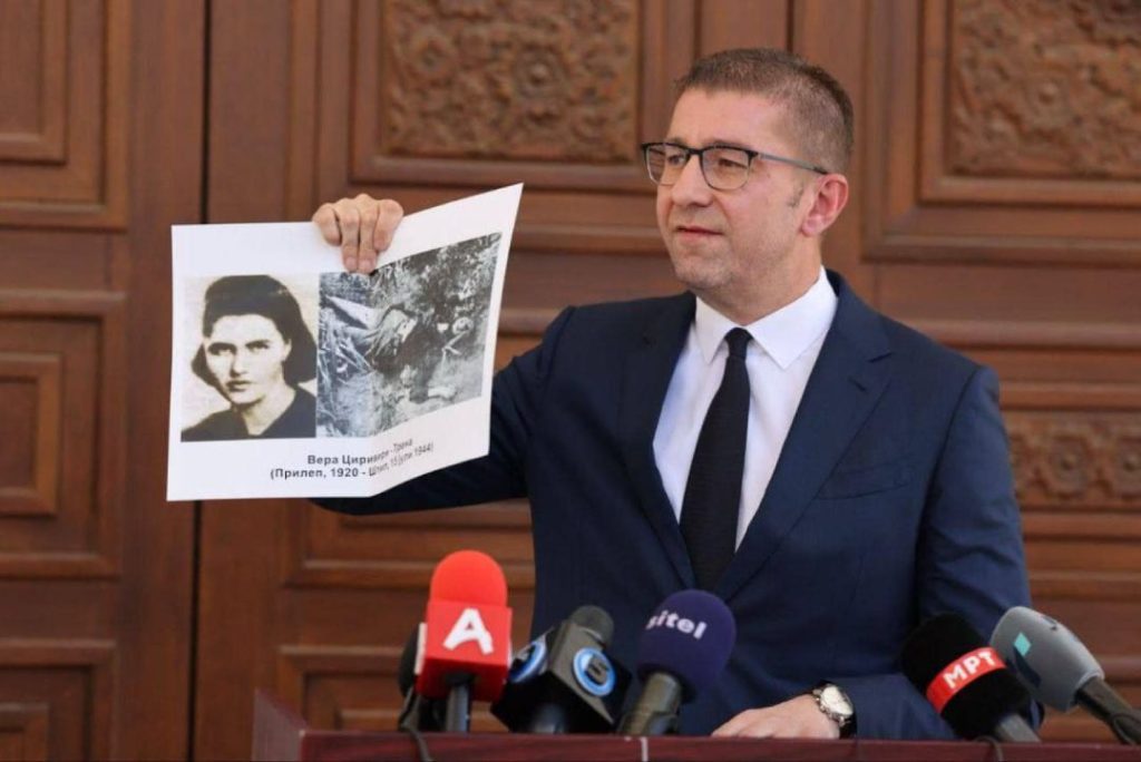 Поведен од оваа атмосфера, тогашниот лидер на опозицијата, а сегашен премиер, Христијан Мицкоски, прифаќајќи го дискурсот на Левица, тврдеше дека ВМРО-ДПМНЕ е „браникот на македонскиот јазик и идентитет“ и нема да дозволи промена на Уставот. Тој, токму на 14 јули пред Собранието ќе обзнани дека на Урсула фон дер Лајен и покажал „слики од убиствата на младите во Ваташа, херојот Вера Циривири Трена и депортацијата на Евреите направени од бугарскиот фашистички окупатор“.