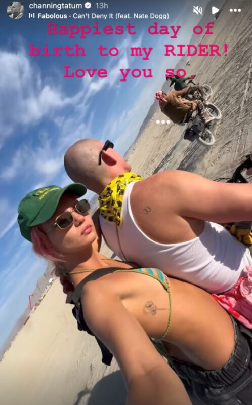 На една снимка, може да се види како таа седи на задниот дел од мотоцикл додека Тејтум вози.