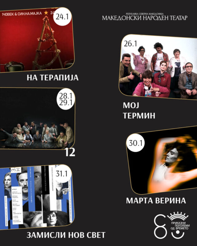 Македонскиот народен театар, 2026 година ја започнува со силен уметнички интензитет и разновидна театарска програма. Првиот месец во годината носи богат репертоар, кој опфаќа сценски спектакли, современи и класични драми и стендап-изведби на големата и малата сцена.