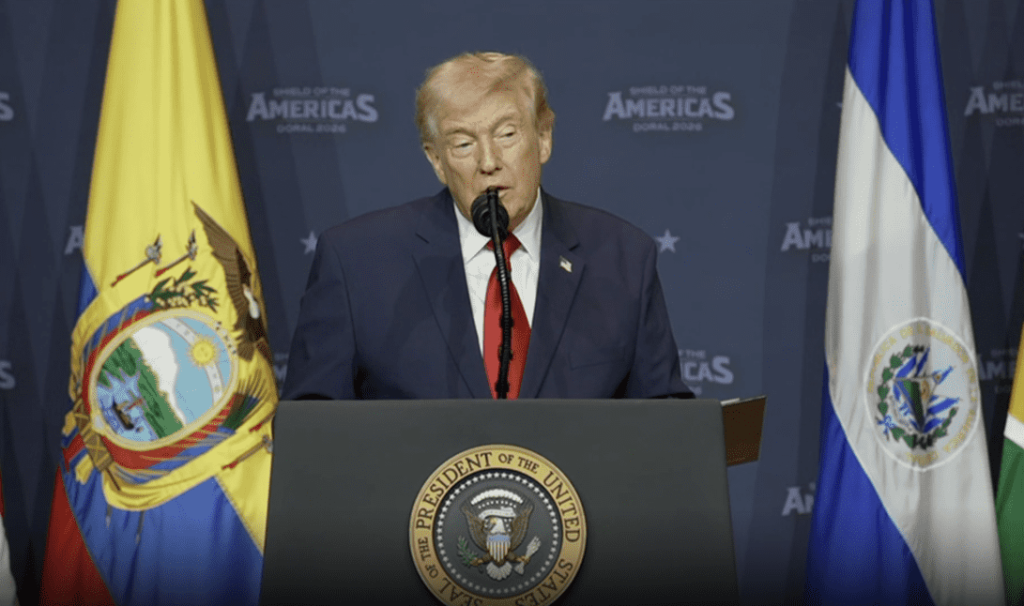 Претседателот Трамп го започна Самитот „Штитот на Америка“, коалиција на латиноамерикански лидери, со ветување дека ќе „се грижи за Куба“, додека САД ја зголемуваат својата интервенција во регионот, пренесува НПР.